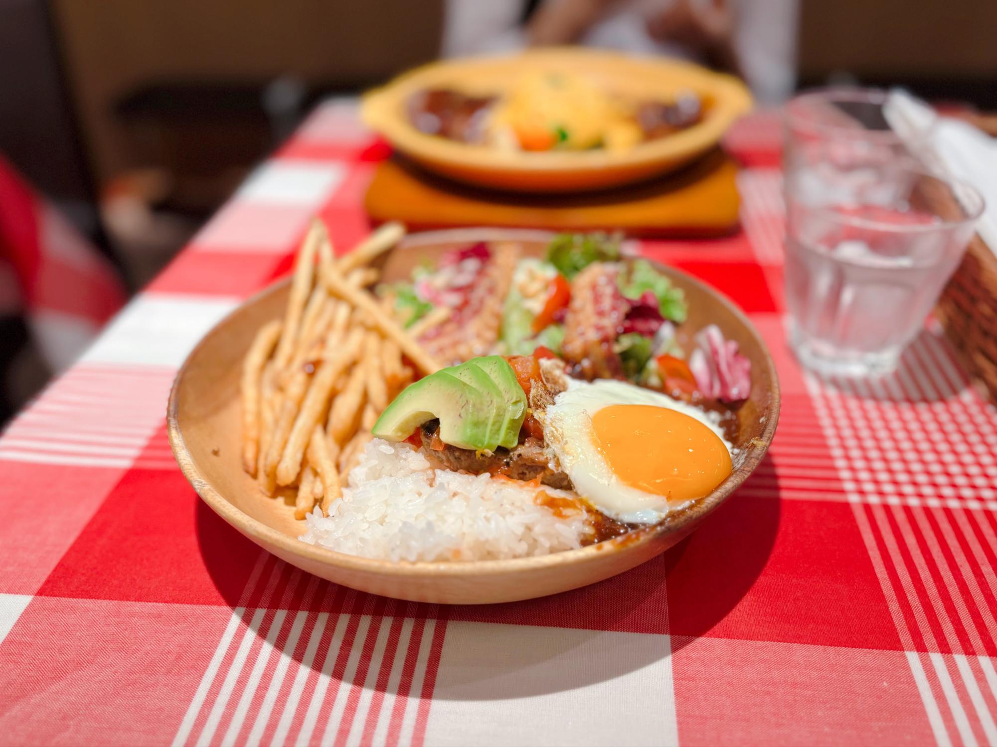 洋食プレートが人気のお店。ランチでもカフェだけでも利用でき、しっかり食事を楽しめます。この日いただいたのは国産牛100%ハンバーグのロコモコプレート(1,780円)ジューシーなハンバーグに半熟の目玉焼きがのったボリューム満点のプレートです。サラダやポテトも添えられていて、食べ応え抜群でした。