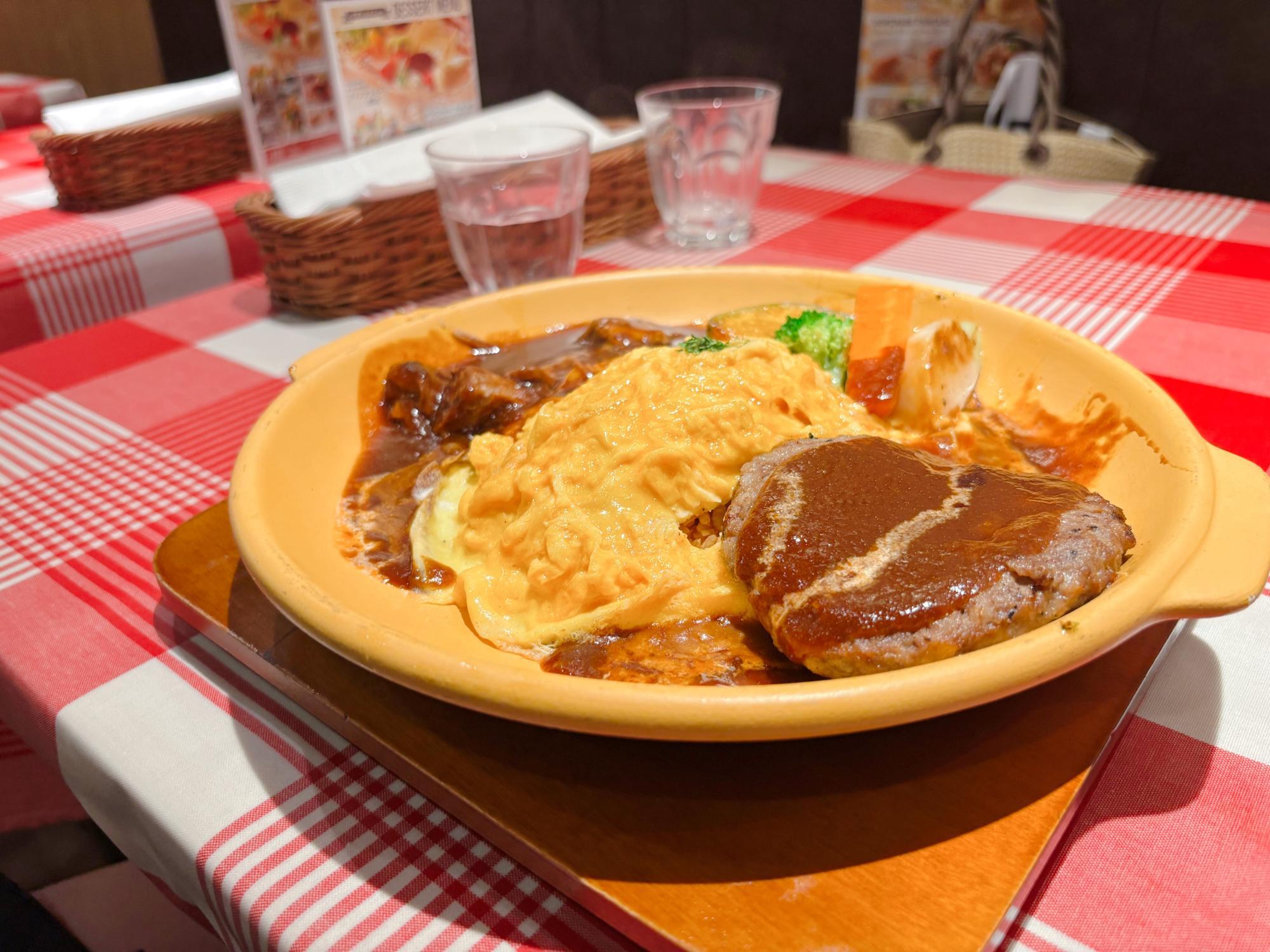 もう一つの人気メニューはこちら。スペシャルコンボオムライス(1,850円)ふわとろオムライスにハンバーグが添えられた贅沢な一皿。洋食好きにはたまらないメニューです。
