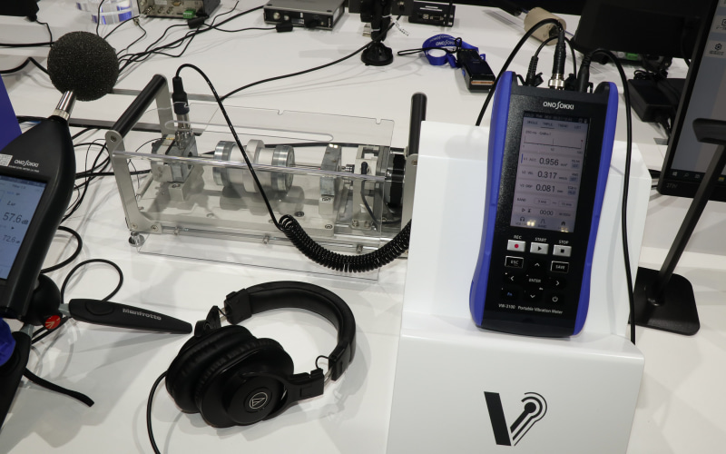 展示ホール・184にある小野測器ブースでは、「モビリティ社会を支える計測ソリューション」をブーステーマに設定。次世代モビリティに貢献する最新の計測機器の展示、紹介を行なっているほか、会場で新製品のポータブル振動計「VW-3100」を世界初公開した。