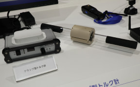 4月に発表されたばかりの新製品である「クランプ型トルク計」も製品展示。2分割された円筒形のセンサーと無線接続で送信されるデータを受信・処理する本体で構成されるクランプ型トルク計は、対象となる車両のドライブシャフトにセンサーを挟み込んで固定するだけの簡単な取り付けを実現。