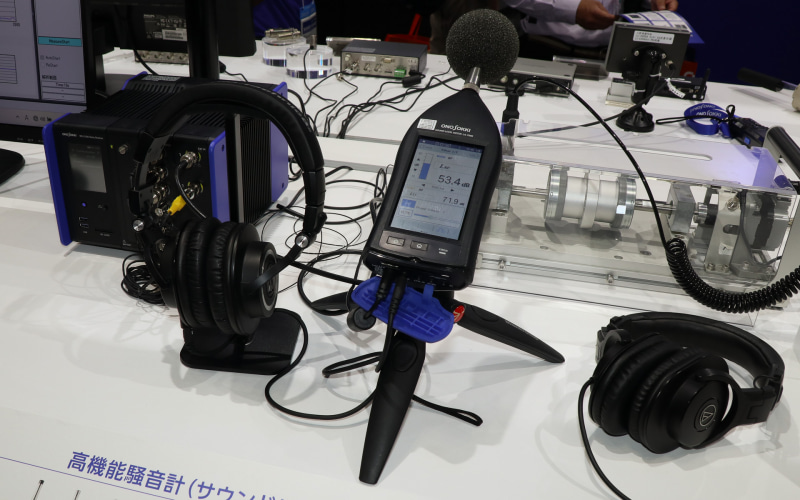 ブースでは異常が出はじめた機械をVW-3100で計測し、「可変バンドパスフィルター」で変換された音の違いをヘッドホンで体験するデモも行なわれた