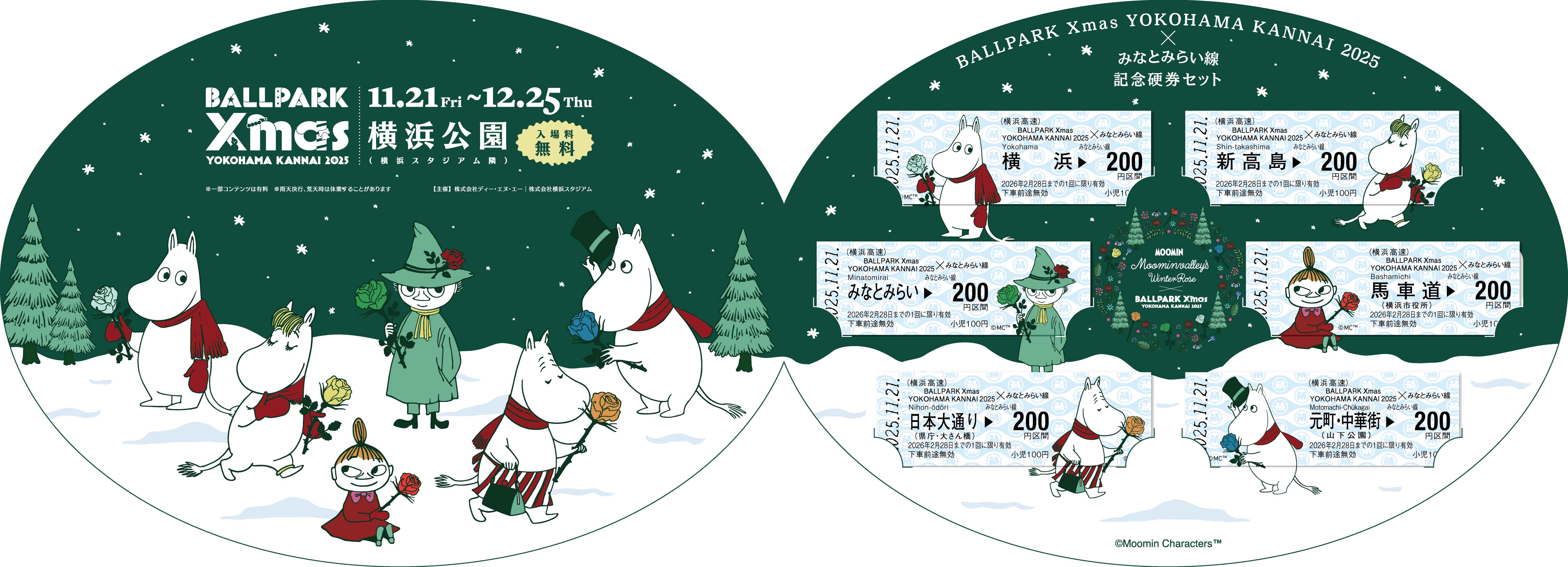 みなとみらい線を運営する横浜高速鉄道株式会社と株式会社ディー・エヌ・エーとの連携協定のもと実施する取り組みとして「Moominvalley’s Winter Rose」シリーズをあしらったBALLPARK Xmasラッピングトレインが運行します。この他にも、記念硬券セットの販売を予定しています。