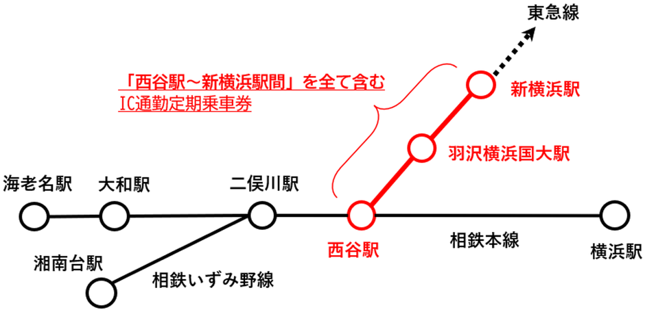 ・定期区間に「西谷駅~新横浜駅」または「西谷駅~羽沢横浜国大駅~JR線区間」を全て含む