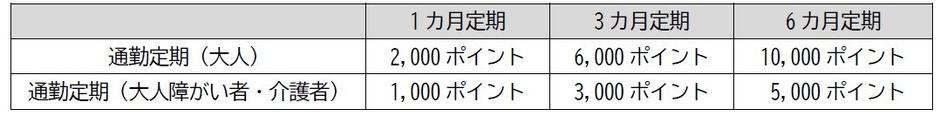 ※3月25日以前に使用開始の定期券の場合、4月1日以降にポイントの受け取りが可能となります。